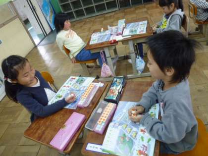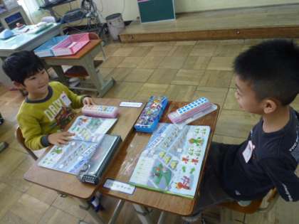 児童は,数図ブロックを使ってお友達と問題を出し合って学習しました。