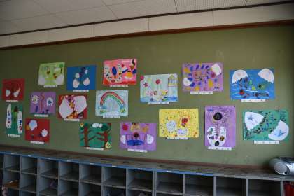 秘密のたまごが完成しました。たまごを割ったら,驚くものがたくさん飛び出しました。教室に掲示しています。