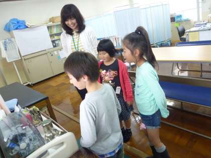 2年生のお兄さん・お姉さんがやさしくリードしてくれたおかげで今まで行ったことのない特別教室に入って,さまざまなものを発見することができました。