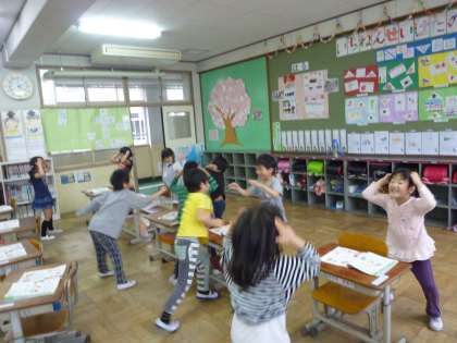 今日は,「じゃんけんぽん」の曲にのって「たん・たん・たん・うん」のリズムをうって音楽を楽しみました。