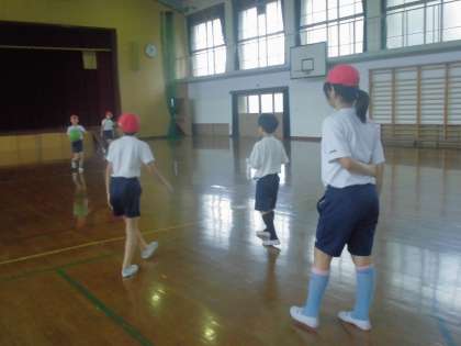 今日は雨だったため体育館でドッジボールを行いました。
