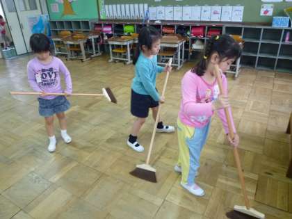 はじめは,持ち方も分からなかったほうきですが,だんだん上手に使えるようになってきました。これからもがんばってほしいと思います。