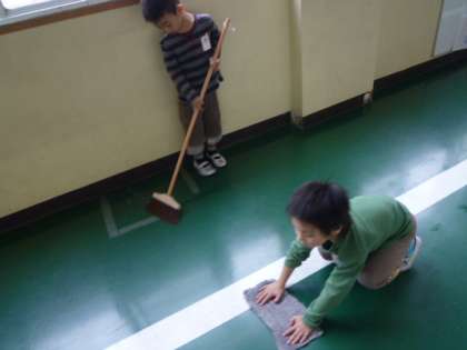 子どもたちは掃除の時間になるといちもくさんに自分の仕事を始めます。