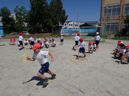 体育の時間に,1年生と合同でリレーをしました。ボールを置き換えるリレーもしました。青空の下で,さわやかな汗を気持ちよくかきました。