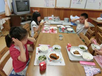 今日はランチルームで給食を食べました。栄養教諭の先生から,大根葉に含まれる栄養について教えていただきました。そのあと,陶器の食器で,いつもと違う雰囲気でおいしく給食をいただきました。耳と顎の付け根を押さえて,大根葉の歯ごたえを感じていた子どもたちでした。