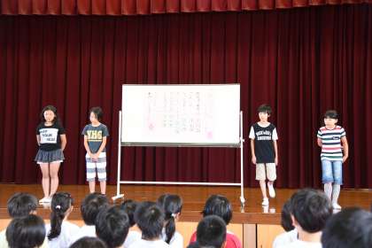 黒田三郎さんの書いた「かみふうせん」の詩を群読しました。2年生も自分達のパートをしっかり大きな声で読むことができました。