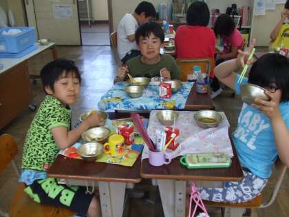 今日の給食はごはん,牛乳,カレーうどん,ほうれん草とじゃこのいためものでした。カレーうどんがピリリとスパイスがきいていておいしかったです。みんな「おいし〜!」と嬉しそうでした。今日も給食は完食でした。