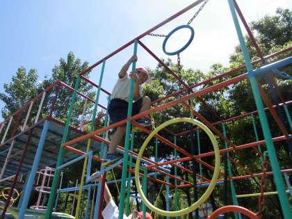 体育の「ゆうぐあそび」で総合遊具の2階に初めて上りました。