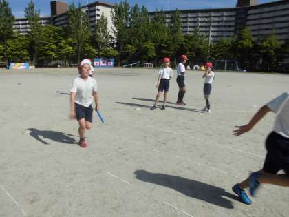 いつもリレーの時は雨が降り,なかなかできませんでしたが,今日は快晴。良い天気のもとで,リレーができました。3回走りましたが,合間の休憩時間にバトンパス練習をしたり,作戦を立てたり,どのチームも時間をうまく使って,取り組むことができました。