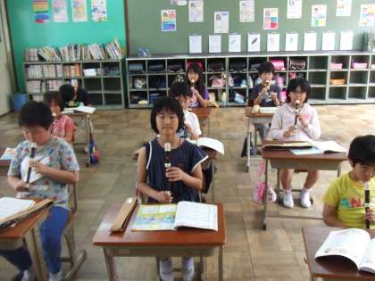 音楽では,リコーダーの学習を始めています。新しいものとの出会いが多い3年生。リコーダーもその一つです。今日は「シ」「ミ」「ソ」の音の復習と正しい音の吹き方を練習しました。みんな吹けば吹くほど上手になってきました。