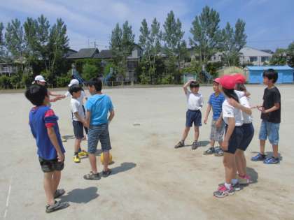 青空のもと,みんな動き回って楽しんでいました。