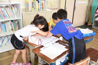 係活動が始まりました。まずはポスター作りからです。学級のみんなが楽しめるように計画を立てました。