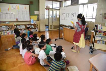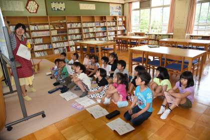 佐々木先生に図書室の使い方を教えてもらいました。正しい本の取り出し方や返し方など,本を大切にする方法を教わりました。読みたい本の見つけ方も分かりました。