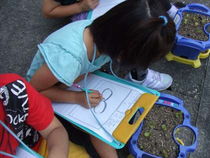 小さな葉ですが,触ると分厚く,しっかりしていると子どもたち。来週はヒマワリと芽の様子の違いを観察したいと思います。