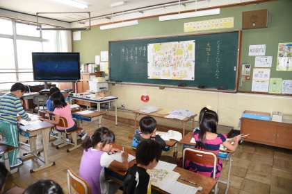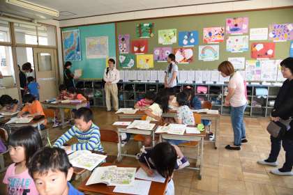 算数と国語の授業を観てもらいました。算数は,長さ比べをしました。国語は,大切なことを聞き逃さないようにして,遊園地の絵の中から迷子を捜しました。
