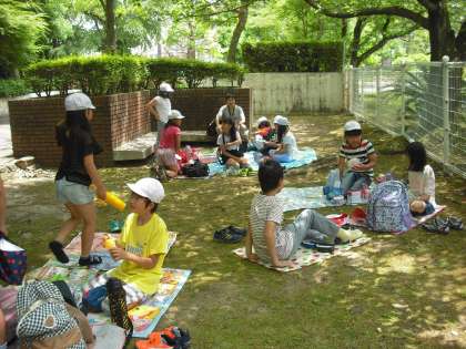 たくさん歩いてほっと一息,お弁当を食べて一休みしました。休憩時間も元気に遊んだり,ゆっくり休んだりと,思い思いの時間を過ごした子どもたちでした。