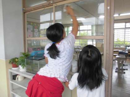 窓をふいたり,