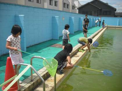 昼休みにプールのヤゴ救出大作戦を行いました。