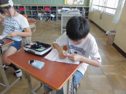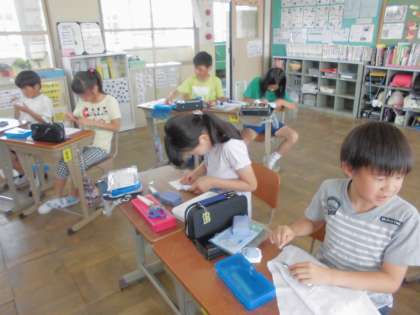 家庭科の学習で,前回は「なみ縫い」に挑戦しました。