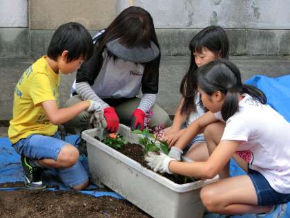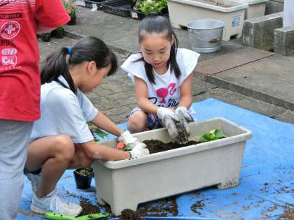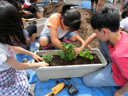 5月31日,花育活動を行いました。しっかりと活動の見通しをもってサルビアなどの花をプランターに植え替えました。教室に戻ってからは,プランターに立てる名札を作りました。