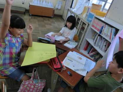 国語科では,「新聞を作ろう」という学習に取り組んでいます。班で,どんな新聞を作りたいか,だれが,どんな内容を担当するのか,話し合いました。どの班も熱心な話し合いが進められました。自分たちが「伝えたい」という思いをもつことがまず大切ですね。