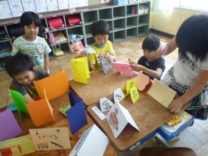 図画工作の時間に,「おってたてたら」の学習を行いました。