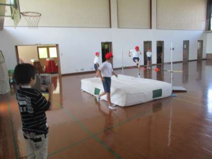 体育館で「走り高跳び」をしました。先週は,自分の跳ぶ向きや3歩助走や5歩助走の歩幅などを確認しました。そして今日は,高さに挑戦しました。I‐padを使って,自分の跳んだ姿を確認しながら行いました。自分の力に合わせて場や高さを選び,頑張って取り組めました。