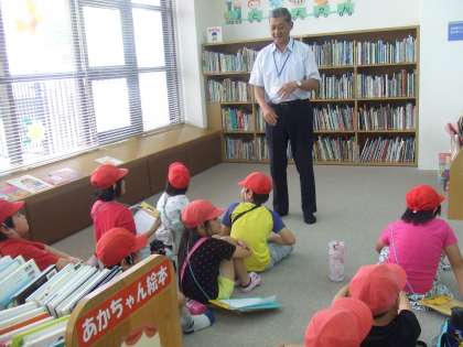 今日は校区たんけんで向島地域にある図書館に見学に行きました。館長さんが図書館のことを詳しくお話してくださいました。みんな熱心に聞いていました。
