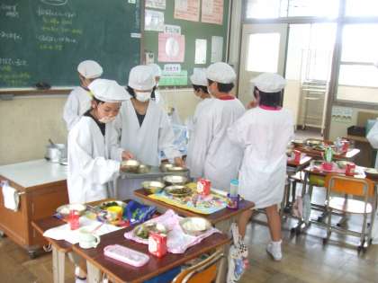 今日の給食は,麦ご飯・ほうれん草の炒め物・ししゃものからあげ・みそ汁・牛乳でした。校区たんけんのあとで疲れていましたが,てきぱき準備でき,みんなでおいしくいただきました。