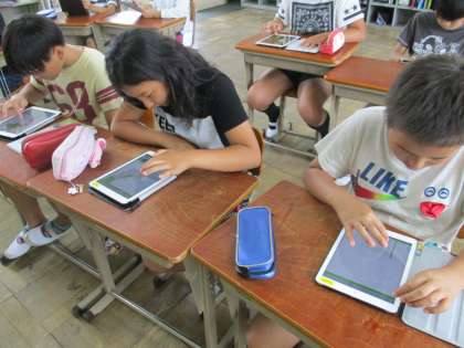 I-padの使い方を学習しました。今日は,「ロイロノートスクール」を使って,自分の名前や好きなものをカードにまとめたり,カメラを使って自分の顔写真をとったりしました。最後は,それらのカードや写真をつなげて,自己紹介スライドを作りました。早くできた子は,名前カードの時に自分の名前の音声を入れて,工夫しました。子どもたちは,互いに教え合いながら,楽しく活動できました。1時間でとても上達しました。