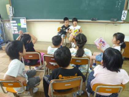 今日は天気が悪かったので,中間休みは遊び係がクイズをしてくれたり,5時間目は図書係が読み聞かせをしてくれたりしました。