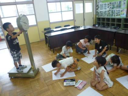 1年生は計量の図画として「体重測定」の絵を描くことになりました。