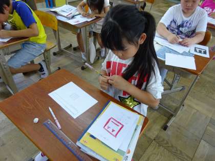 今日は見つけた記号の中から詳しく調べたい記号を2つ選び,それぞれの記号についてよく見て気づいたことをワークシートにまとめました。