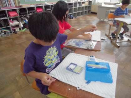 今日は,両脇の本返し縫いが終わった人も何人かいました。