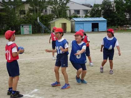 体育ではエンドボールに取り組んでいます。今日は第5時。パス回しも声かけも,パスの仕方や動きもどんどん成長している子どもたちです。活動のあとには,今日のよいプレーをたくさん交流できました。友達のよいプレーに気が付く目をもっていることも成長だと思います。