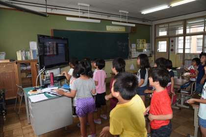 金曜日は,EnglishDayです。昼の帯学習で英語の歌を歌いました。HelloSongを元気に歌いました。