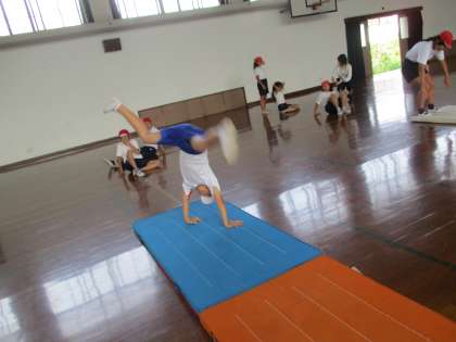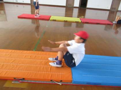 最後の「マット運動」の学習でした。ねらい1の連続技では,技の精度はもちろん,スピードも素晴らしかったです。ねらい2の技練習では,それぞれが一生懸命努力し,新しくできるようになった技が増えた子がたくさんいました。うれしかったです!