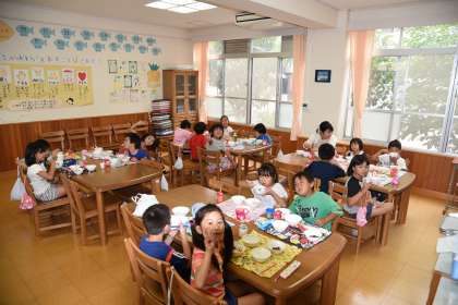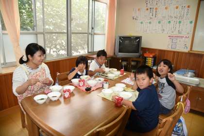 給食指導がありました。河野先生とランチルームで給食を食べながら,いろいろと給食のことを教えてもらいました。