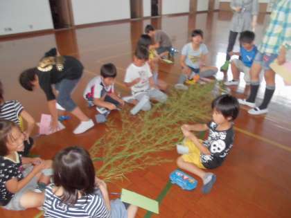 今日のなかよし集会では,願いごとを書いた短冊や,