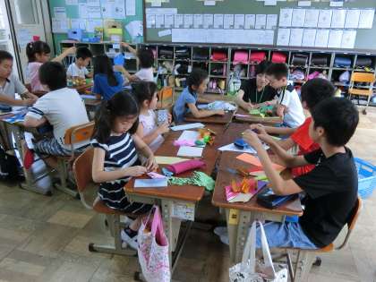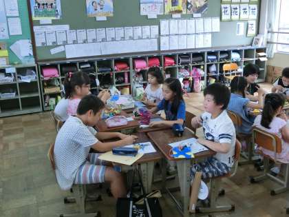 なかよし集会で七夕飾りを願い事と共に笹に飾り付けました。6年生が中心となって会を進めてくれました。