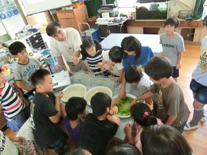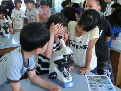 京都教育大学の坂東先生による,水辺にいる微生物(プランクトン)についての学習を4,5年生合同でしました。はじめて顕微鏡をのぞき,大きく見えたプランクトンに興奮していた子どもたちです。社会見学に行った「水環境保全センター」でも,微生物が汚れを分解する,と学習したので,今日の学習もどこかでつながるといいなと思います。