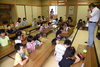 伏見警察署の人に来てもらって「非行防止教室」を行いました。「やって良いこと,悪いことを知る」「いつも正しいことができる人になる」の二つを目標にすることを教わりました。