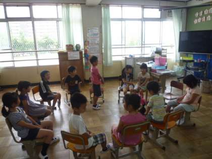 4月に同じように丸になって自己紹介をしたときは,名前と好きな食べ物しか言えなかった子どもたちですが,今回はそれぞれアピールポイントを伝えることができました。