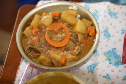 給食のカレーに「幸せニンジン」が入っていました。今日の形は「ハート」でした。ハートを崩さないように,慎重に配膳しました。ハートのおかげで和やかな給食時間でした。