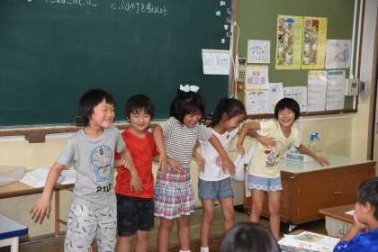 「狸の太鼓」「かっこう」の3拍子のリズムに合わせて,動きを考えました。強・弱・弱になるように考えました。それぞれのグループでうまくできました。