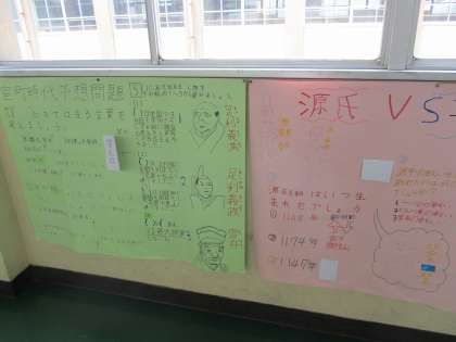 今日は,図工の作業が早く終わることができたので,残った時間で,予想問題を模造紙にまとめてみました。教科書や資料集,自分のまとめたノートを見ながら,大切なことを問題にしました。