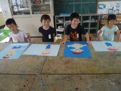 図画工作科「せんせいあのね」の学習で,楽しい水泳学習の絵を描きました。
