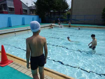 今日は気温が30度を超え,絶好のプール日和でした。子どもたちのめあても水泳学習の回を重ねるごとに,ステップアップしてきました。バディで泳ぐ様子を見ながら,声をかけ,自分たちで学習を進めています。4年生が3年生にマンツーマンで教える姿も授業のいたるところで見られ,頼もしいです。