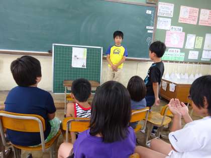 社会で校区たんけんをして調べたことを総合の学習で新聞にまとめました。今日は,発表会でした。新聞を発表し,質問や感想を交流しました。初めて挑戦した新聞作り。苦労しましたが,一人一人,わかりやすいよい新聞に仕上がりました。
