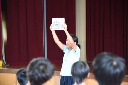 7月の児童朝会がありました。7月の目標が発表されました。「友達と仲良く過ごせるようになろう」です。仲のいい2年生は,ますます仲良くなれそうです。